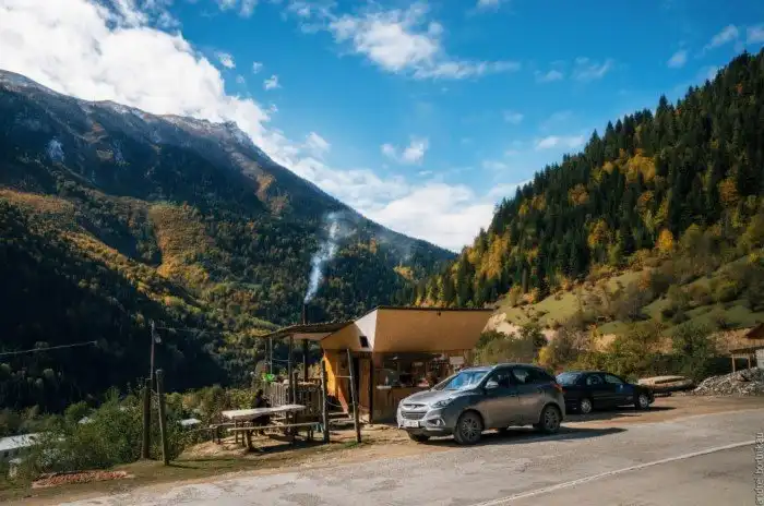 Некоторые бывалые предостерегали нас о сложностях на пути в Местию в виде плохого покрытия и природных катаклизмов. Но нам повезло. На маршруте мы не встретили дорожных проблем, за исключением пары мини-участков, где не было асфальта из-за того, что его смыло селем. Но и там вовсю работала спецтехника, устраняя горный беспредел.