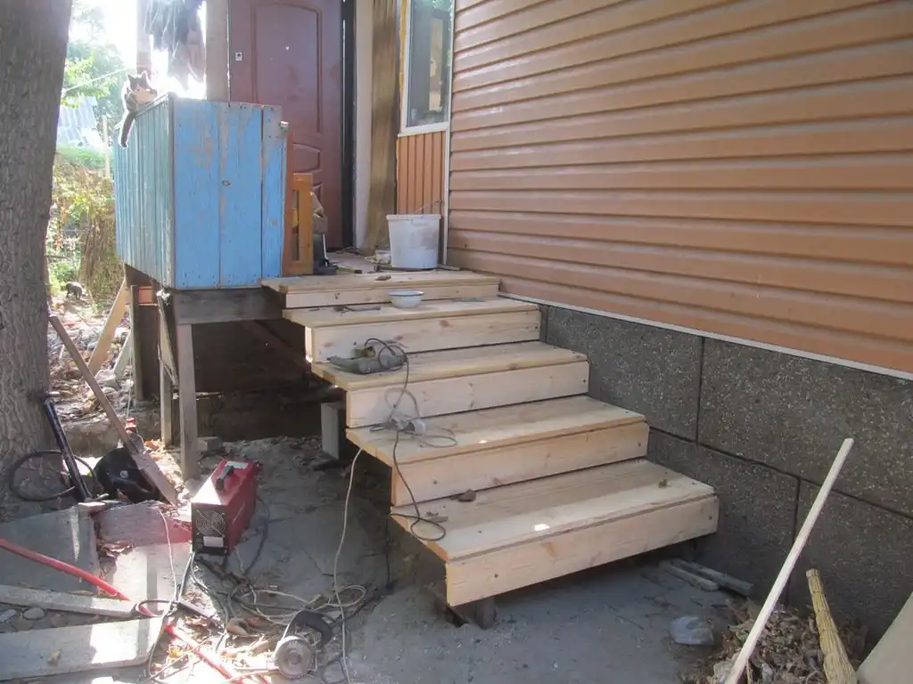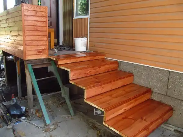 Залакировал и обшил крылечко вагонкой. Кстати, рядом стоит та самая лестница-донор, которая пошла на основу ступенек.