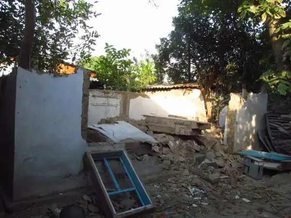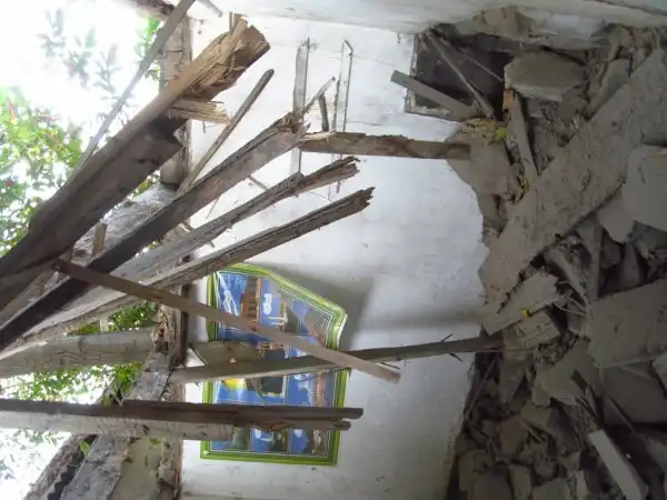 Кухня была сделана за месяц с копкой нехитрого септика. Потом я принялся за соседнюю комнату. Между ними раньше была дверь, но она была заложена. Один удар ногой и кладка полетела на пол. Дальше было сложнее: нужно было расширить 80-см проём до 120 см. Стена - 50 сантиметровый саман, я думал что справлюсь с ним быстро, однако хер там: саман плохо поддавался ударам топора, монтировки, кувалды и пр. Но проем был расширен. Жена хотела "арку", но убедив её, что это удел 90-х, да и вообще... Короче, получился обычный проём :)