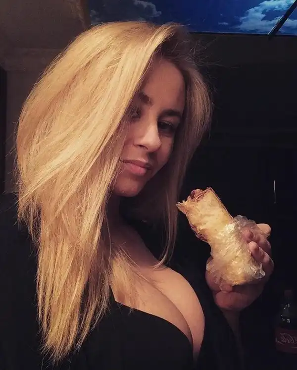 У этой дамы тоже странные пристрастия в еде. Ох, не доведет вас фастфуд до хорошего