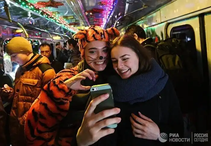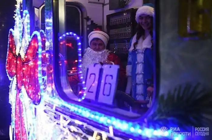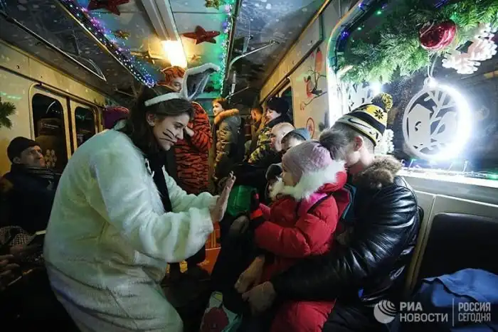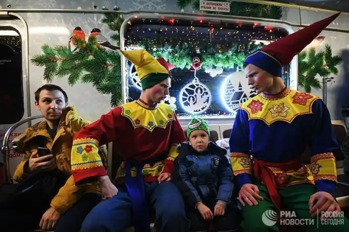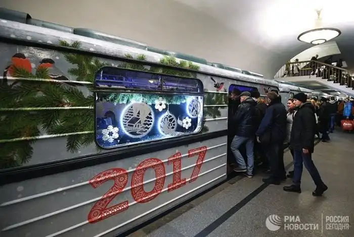 Пассажиров московского метро стал развлекать новогодний поезд, который будет курсировать по Кольцевой линии до 15 января. Новогодний поезд это не только празднично украшенные вагоны, но еще и Дед Мороз со Снегурочкой, а также некоторые другие сказочные персонажи и, конечно же, предновогоднее настроение.