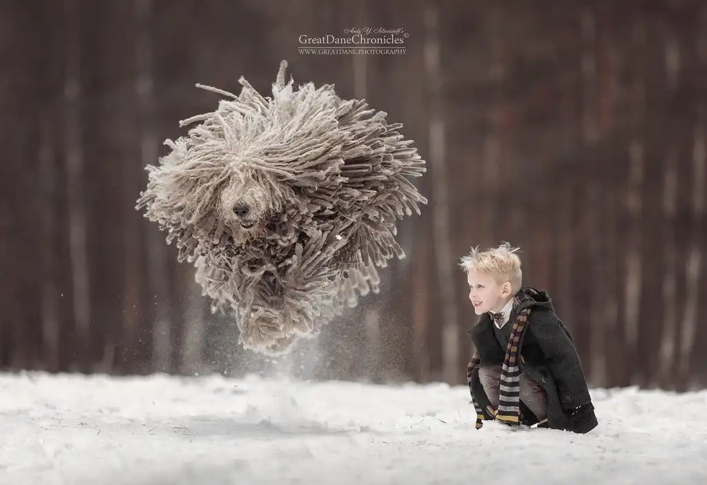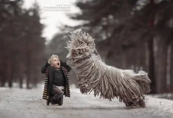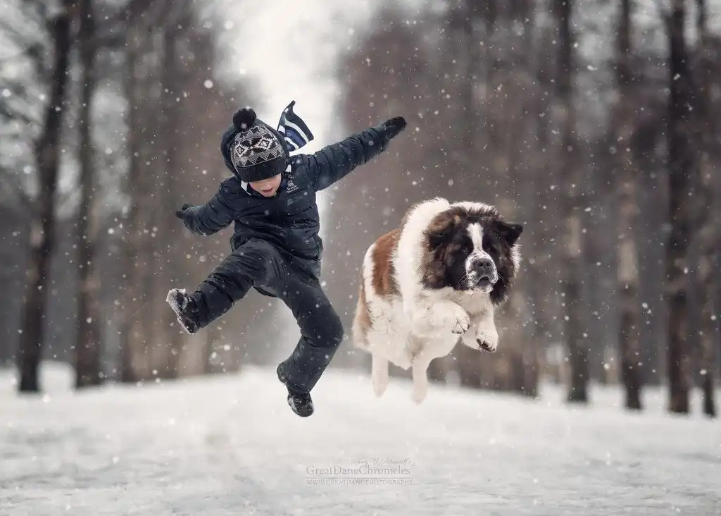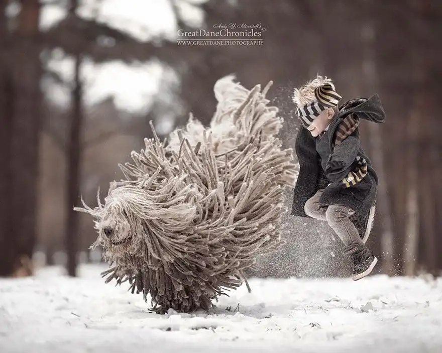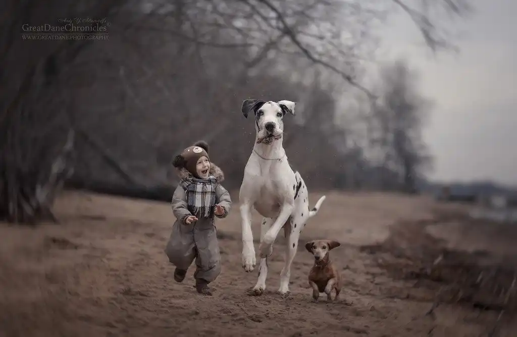 Фотограф Энди Селиверстов (Andy Seliverstoff) работал над этим проектом, снимая в окрестностях Санкт-Петербурга больших собак и маленьких детей. Эти снимки неизменно вызывают улыбку, особенно у любителей домашних животных.