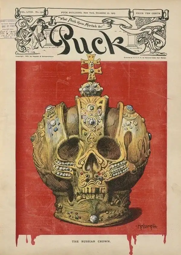 Обложка журнала «Puck» по случаю Первой русской революции, 1905 год