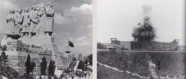 Прага. Самый большой в мире памятник Сталину (вес монумента 14 000 тонн, он состоял из 32 тысяч каменных фрагментов), открыт 1 мая 1955 года, взорван в 1962 году: