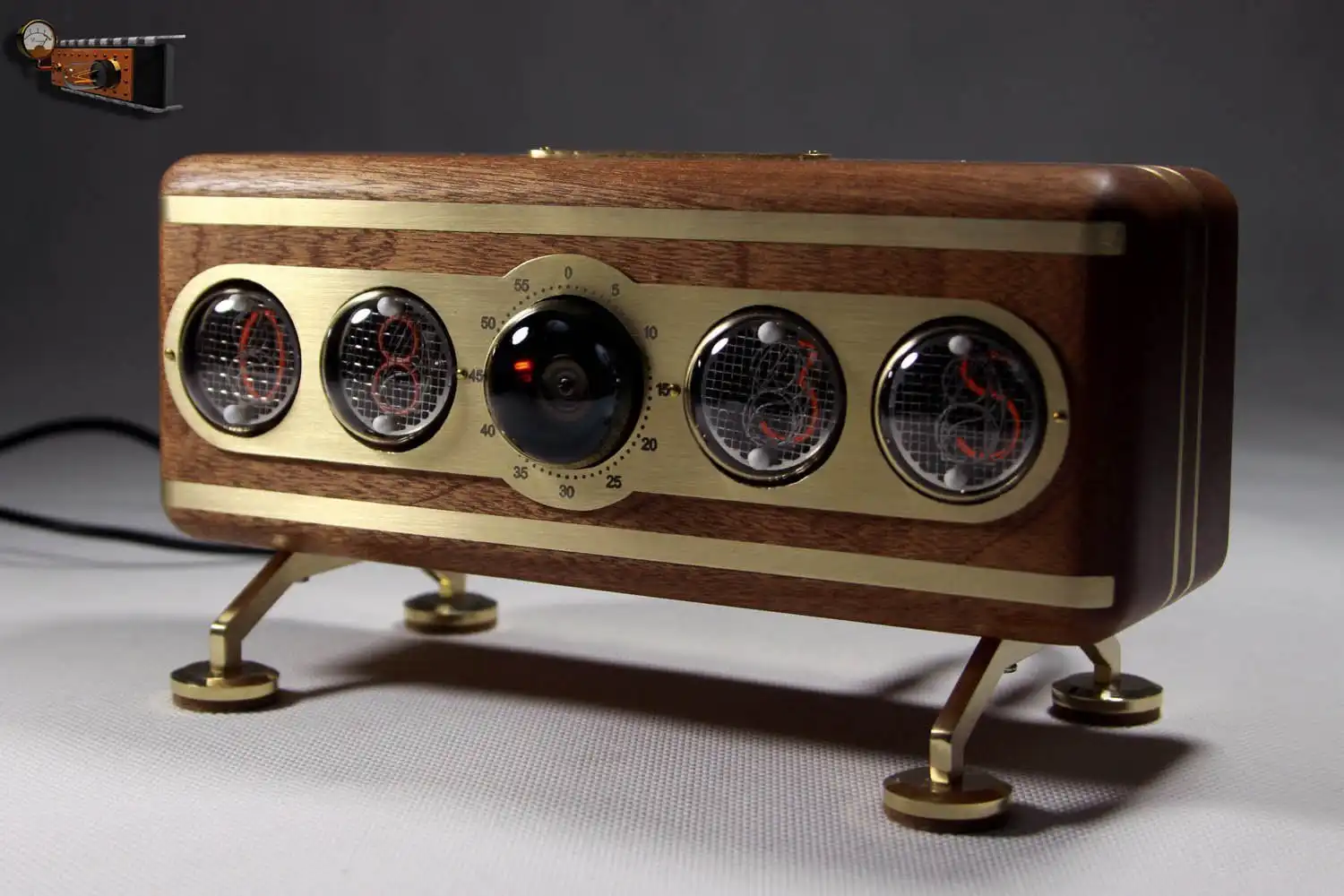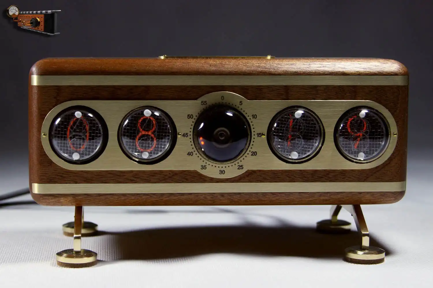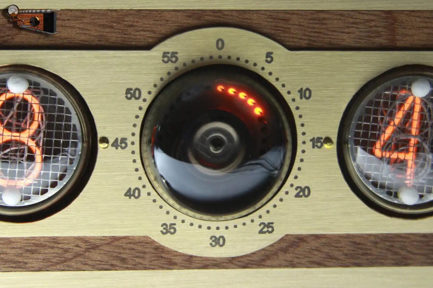 Настольные часы с синхронизацией времени по сигналам GPS и декатроном в качестве индикатора секунд.