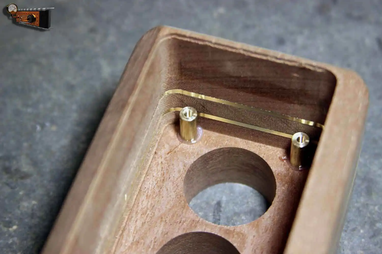 Внутри выбираю фрезой нишу для установки платы и вклеиваю по углам стойки.