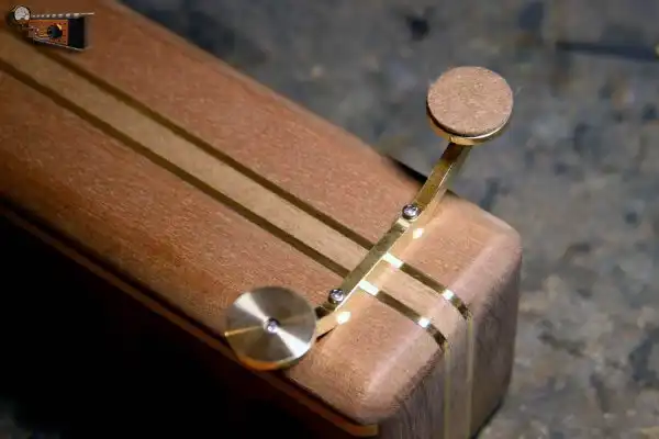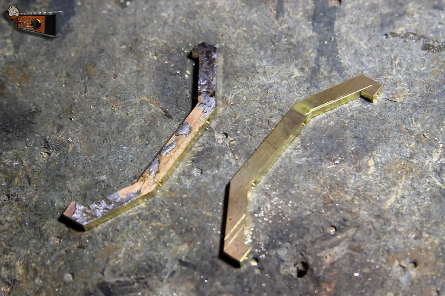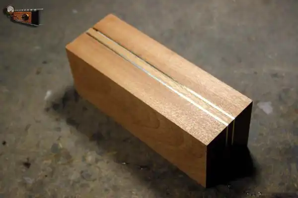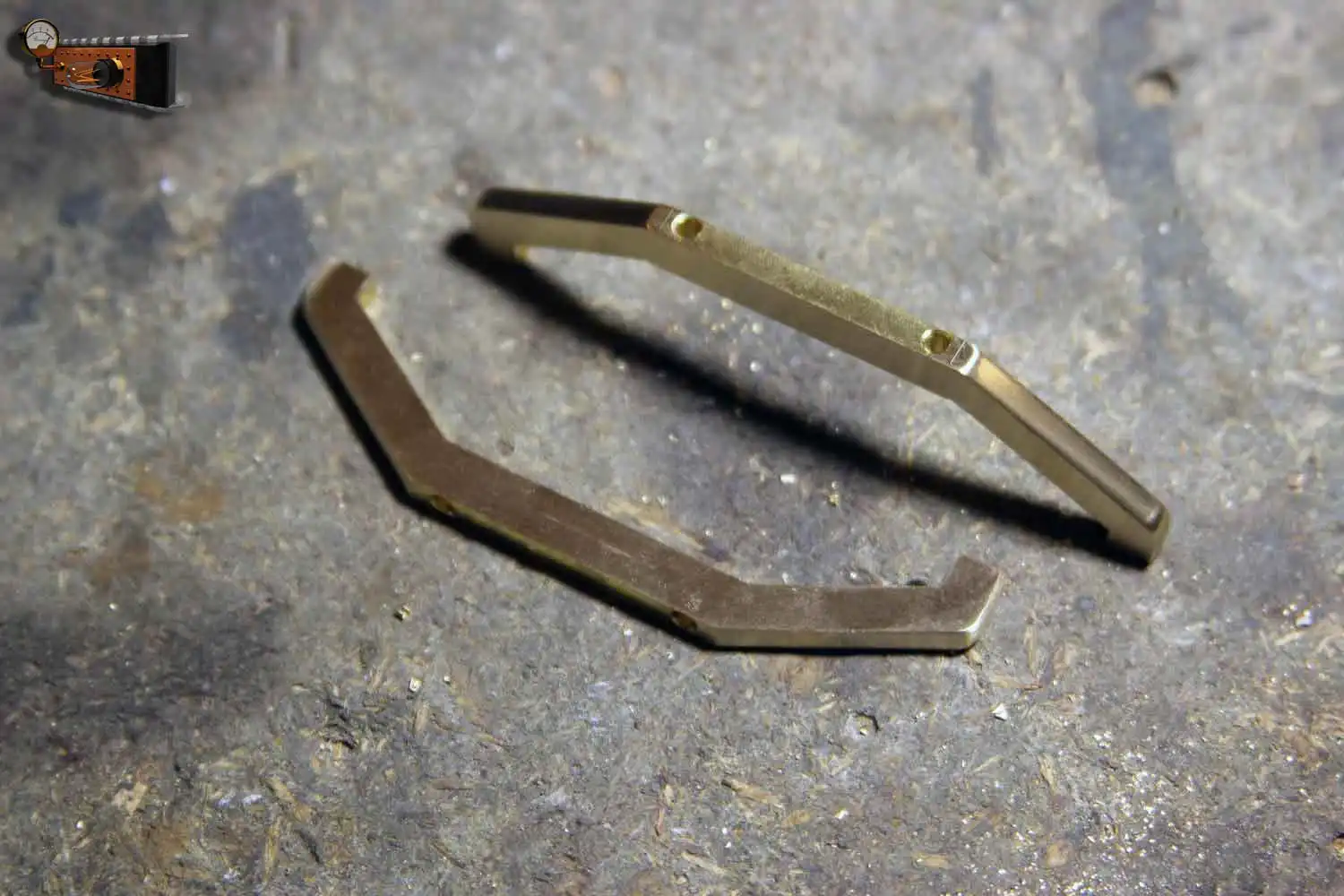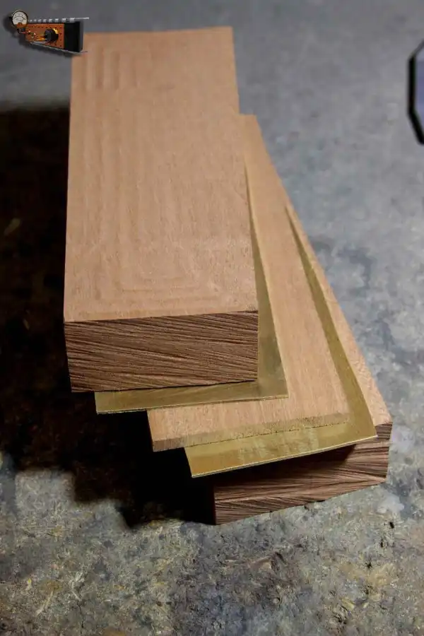 Для этого склеиваю бутербродом несколько брусков красного дерева с прокладками из латуни толщиной 2 мм.