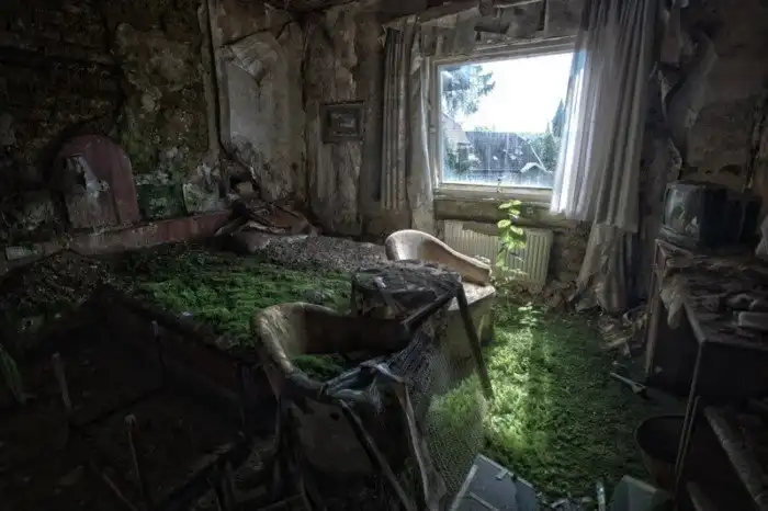 Тут тоже частично сохранилась мебель,но все комнаты почти поросли травой.