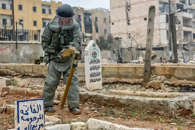 В освобожденном сирийском городе Алеппо остается огромное количество мин и неразорвавшихся снарядов, которые представляют опасность для мирного населения. Зачисткой города от взрывоопасных предметов занимаются не только сирийские, но и российские саперы. Далее предлагаем взглянуть на фоторепортаж, который расскажет нам о том, как проходит работа наших саперов.