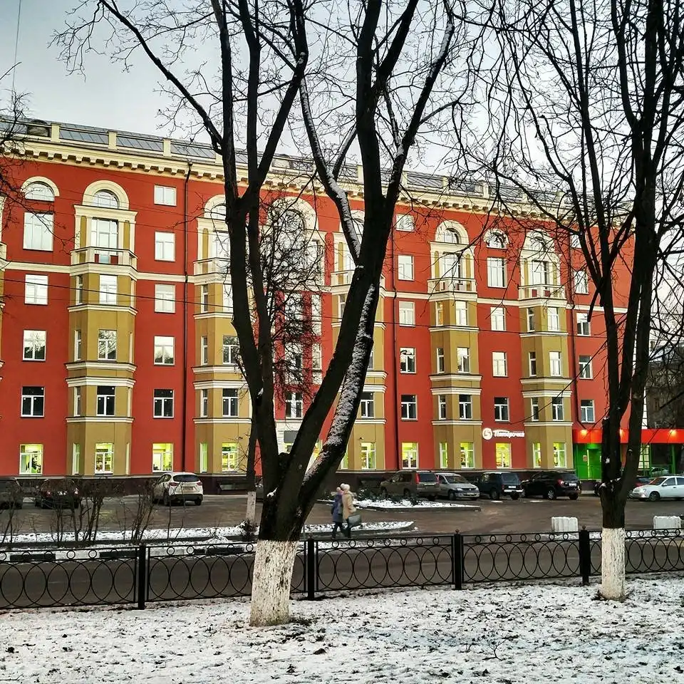 Дом на Литвинова выглядит так. Красивая добротная сталинка, хоть и загаженная рекламой.