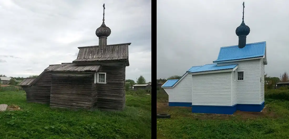 В 2016-м местной жительнице пришло в голову её отреставрировать. Причём ни приход, ни священник к реставрации отношения не имели. Женщина просто наняла бригаду рабочих, которые сделали новую крышу и обшивку.