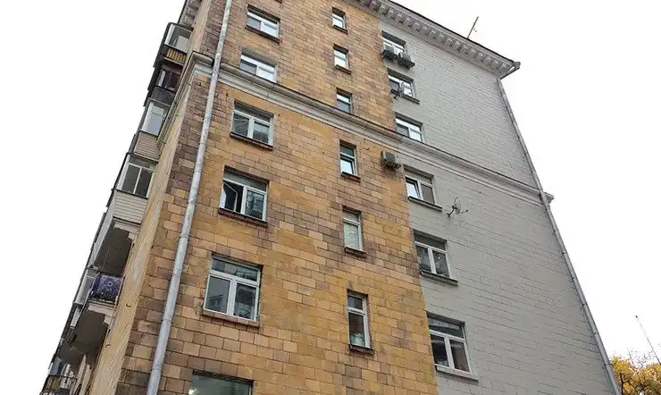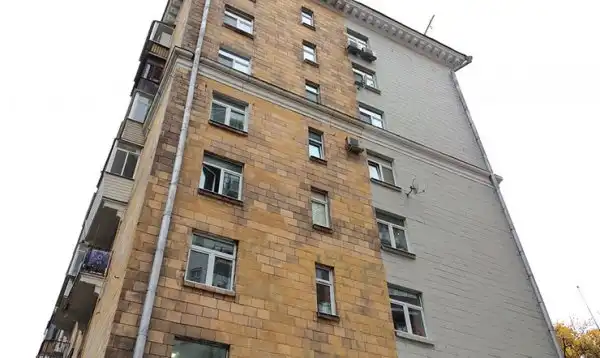 В московском районе Сокол сталинки, облицованные плиткой из песчаника, решили выкрасить в отвратительный серый цвет. Непонятно, как такое могло прийти кому-то в голову.