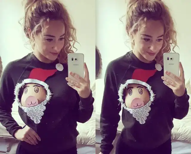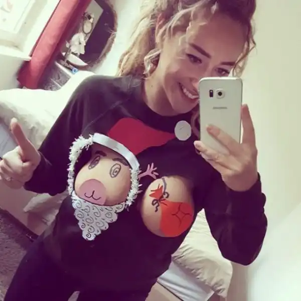 Не знаю, как вам, а этой девушке, судя по всему, очень нравится ее рождественский свитер. Конечно же, выглядит он довольно весело и креативно, только вот за пределы дома в нем осмелится выйти далеко не каждая девушка.