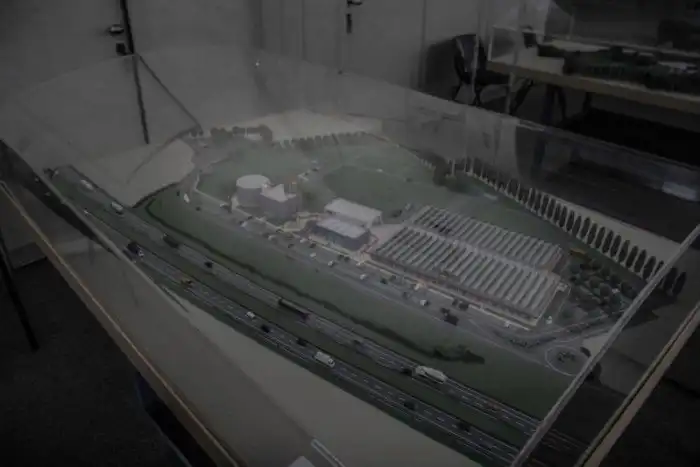 Удивительно, как осталась масштабная модель предприятия, да еще целая.