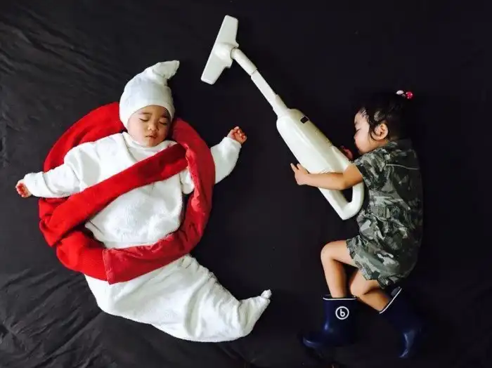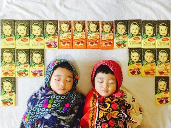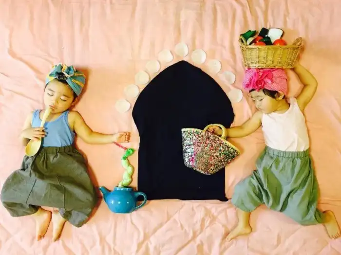 Японка Айюми Омори — мать двухлетних двойняшек Итики и Тайити, мальчика и девочки. В своем инстаграм-аккаунте Омори фотографирует спящих малышей в разных образах и декорациях — они уже побывали вишенками, светлячками, гусеницами, Микки Маусом с Минни и даже солонкой и перечницей.