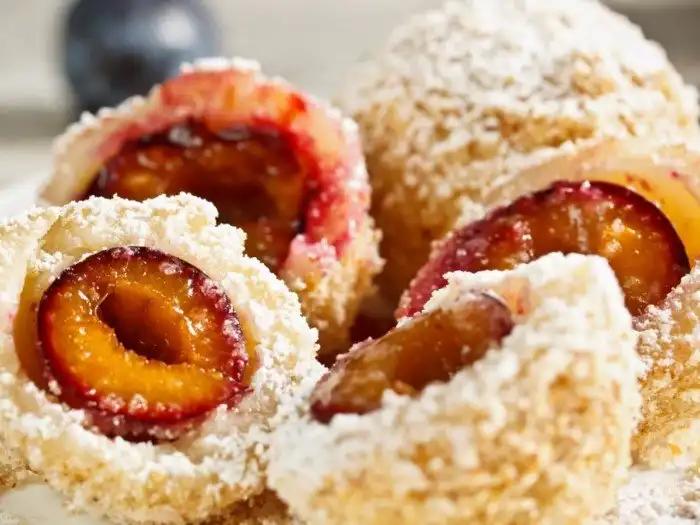 Чехия, фруктовые кнедлики. Сладкие и вкусные. В качестве начинки обычно используется слива. Посыпают кнедлики сахаром и поливают топленым маслом.