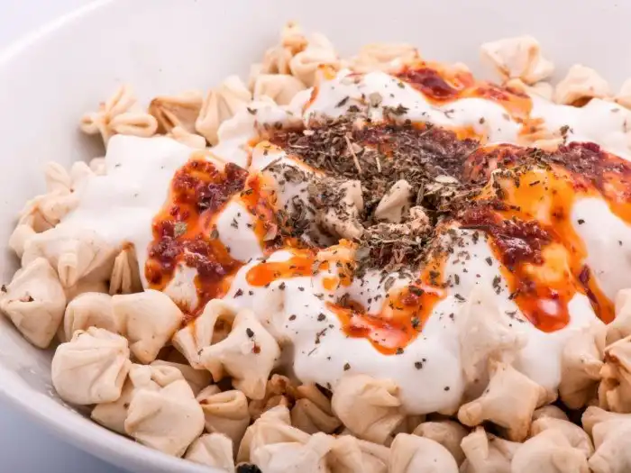 Турция, манты. Турецкие манты обычно небольшого размера, нежели те, что мы привыкли видеть. Начиняют их говядиной или бараниной. Подают манты в соусе из йогурта, масла и красного перца.