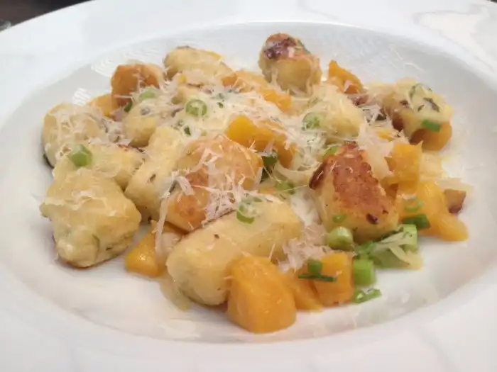 Италия, ньокки. Представляют собой по особому приготовленный картофель в соусе.