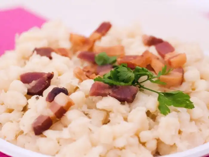 Словакия, брынзовые галушки. Паста, густо заправленная брынзой.