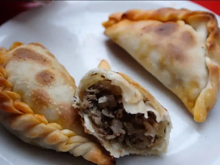 Испания, эмпанада. В переводе с испанского означает «завернутые в хлеб». Внутри жареного теста обычно мясной фарш, вареные яйца, оливки, лук, красный перец и тмин.