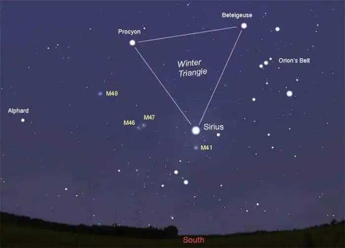 Процион — вторая самая яркая звезда Зимнего треугольника. Её оттенок слегка красноват, и обычно увидеть её можно в последние месяцы зимы.