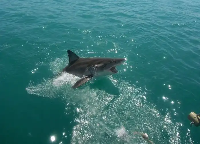 Огромную белую акулу сфотографировали у берегов ЮАР пассажиры небольшой туристической яхты, которые вышли в море, чтобы взглянуть на одного из самых опасных в мире хищников. В какой-то момент приманкой, которая тащила за собой яхта, заинтересовалась 4-метровая акула, которая стала выпрыгивать из воды, пытаясь схватить добычу. Находящиеся на борту туристы не могли упустить столь подходящий момент и сделали эти замечательные снимки.
