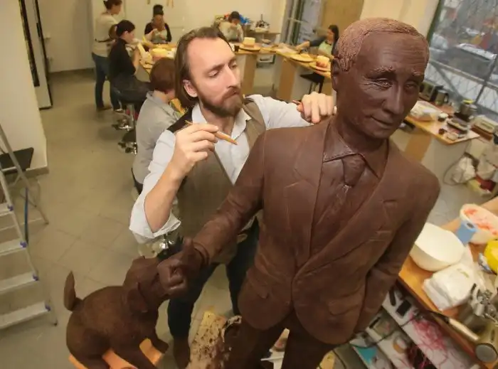 А в Питере создали Путина в полный рост, полностью из шоколада.