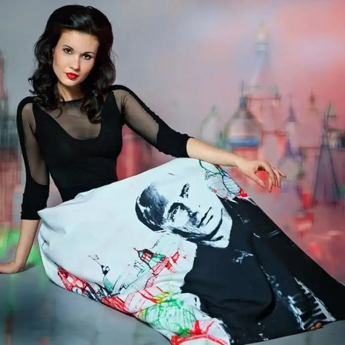 Нина Ручкина, Екатеринбургский модельер, создала ещё одно платье с Путиным, по эксклюзивному заказу Юлии Михалковой.