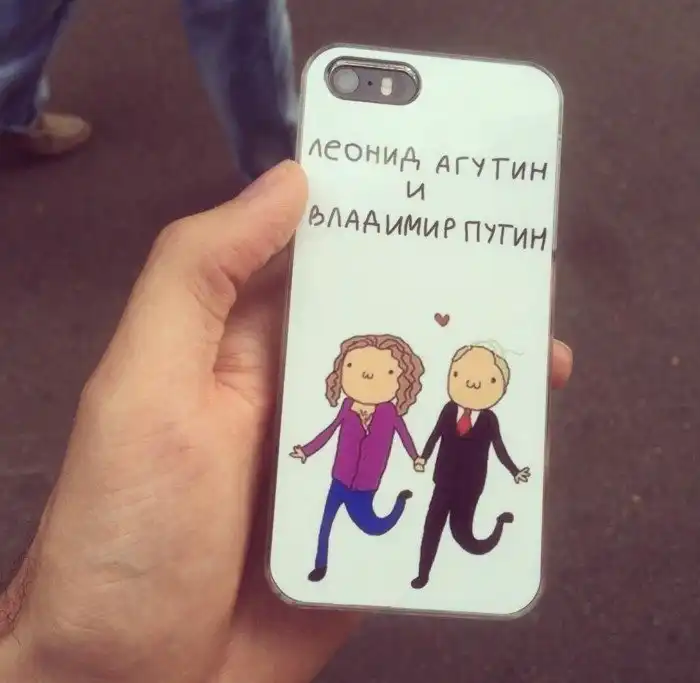 Обратите внимание на этот оригинальный чехол для телефона. Правда до сих пор не понятно, какое отношение Агутин имеет к Путину, но выглядит мило.