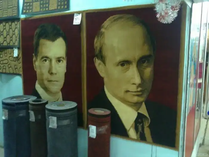Чего только не найдёшь на Российских рынках. В Сочи продаются ковры ручной работы с изображением Путина и Медведева.