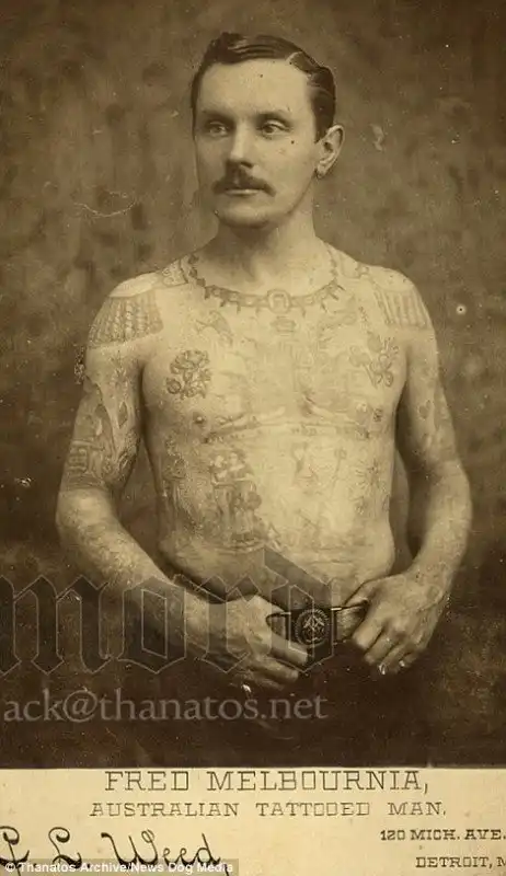 21. Фред Мельбурния попал в «шоу фриков» в 1887 году благодаря своим татуировкам