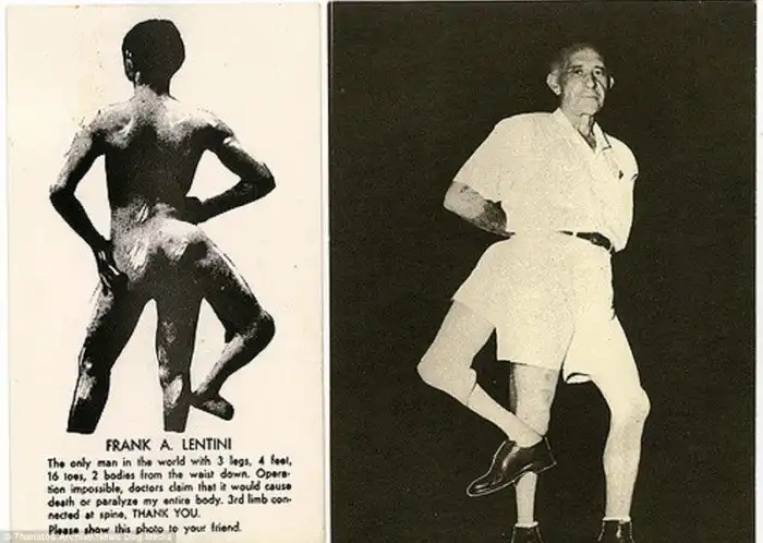 32. Фрэнк Лентини, который родился с тремя ногами, стал знаменит в США. Его называли не иначе как «Король». Гвоздем его выступления было набивание футбольного мяча третьей ногой
