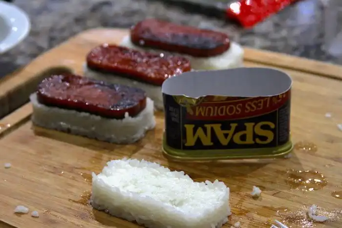 Спам активно используют в традиционной гавайской кухне и готовят из него всякие странности. Например, суши. При этом используя банку в качестве формочки.