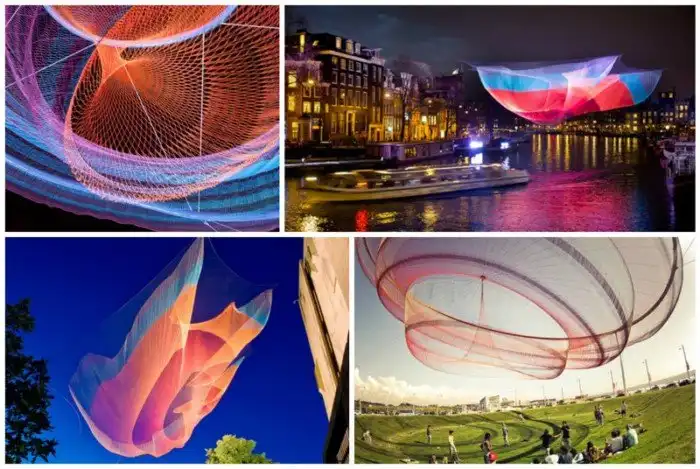 Американская художница Джанет Эчельман создает гигантские воздушные скульптуры-"медузы" из сетей