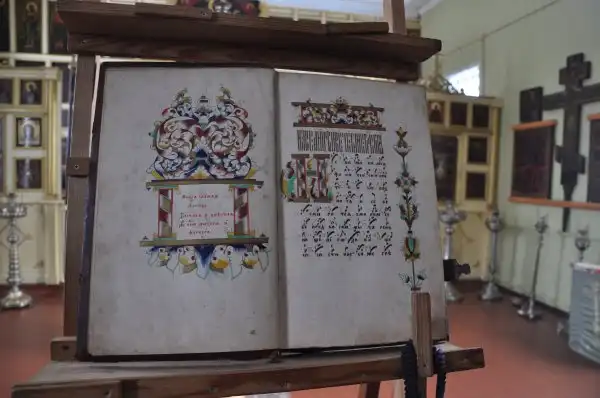 Службы у Старообрядческой церкви значительно длиннее – в среднем пять часов. Также строго соблюдается дресс-код. Мужчины молятся в чёрных кафтанах, а женщины – в сарафанах, как это практиковалось до 17-го века. Мужчины и женщины молятся раздельно в своих строго определённых местах храма. Хор мужской и поёт как встарь – по крюкам – старинным нотным символам, которых около ста, вместо привычной нам нотной записи. В храмах обычно запрещено фотографировать – но вот уникальная фотография рукописной богослужебной книги с крюковыми символами для пения. Надо сказать, что старообрядцы вообще предпочитают рукописные книги…
