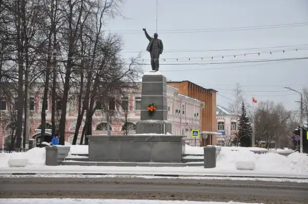 Памятник Ленину 20-х годов… Сейчас такой же, только без надписи. Стоит в самом центре города на месте взорванного главного собора.
