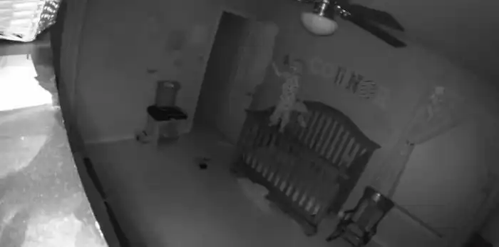 Эта запись сделана в октябре 2014 года. Вор залез в частный дом и, попав в детскую, остановился у кроватки, где спал ребенок. Камера зафиксировала, как он просто долго стоял и смотрел на владельца. Это продолжалось несколько минут. Затем вор ушел, не причинив ребенку никакого вреда. Он взял из дома лишь небольшую сумму денег и ноутбук, который выбросил во дворе. Одним словом, все кончилось хорошо. Но родители, очевидно, пережили несколько страшных минут, пока преступник стоял у колыбели и задумчивости.