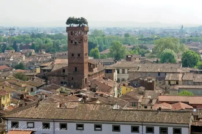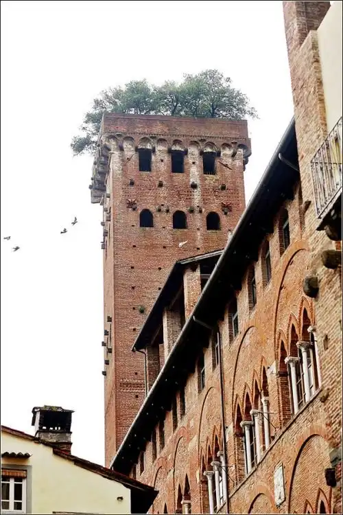 В средние века зажиточные итальянские семьи, строя себе дома и дворцы, оборудовали их башнями. Высота башни показывала статус семьи, поэтому каждое семейство старалось обзавестись более высокой башней. Далеко не все из этих башен сохранились до наших дней, однако высота некоторых из них превышала 50 метров. Семья Гуиниджи из города Лукка решила выделиться несколько иначе, и, построив не самую высокую 45-метровую башню, они разбили на ее вершине сад. В каменных ящиках с землей растут семь дубов, время от времени деревья пересаживались, но первые упоминания о деревьях на вершине башни относятся еще к XV веку.
