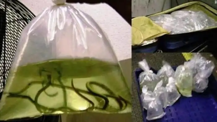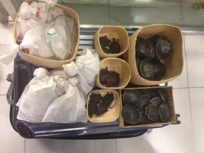 Сотрудникам служб безопасности часто приходится встречаться с контрабандистами животных, но этот гражданин Южной Африки переплюнул их всех! В 2009 году, возвращаясь из Таиланда домой, в ЮАР, он был арестован за нелегальную перевозку... более 70 живых животных! Среди них были змеи, скорпионы,каймановые крокодилы и черепахи. Животные были конфискованы и отправлены в карантин, а мужчина арестован по обвинению в масштабной контрабанде.