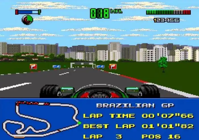 Возможно, лучший симулятор гонок F-1 на Сеге. Хорошая графика, реалистичное управление и, главное, при игре вдвоём игровой процесс не тормозит, как в других симуляторах Ф-1 для Megadrive / Genesis.