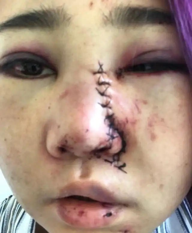 Девушка по фамилии Донг вместе с подругой отправилась туристкой в город Лицзян. Уж не знаю, что там за достопримечательности, но барышень занесло в шашлычную, где бухала дюжина мужиков. Совсем неправильных мужиков. Один из них ударил девушку бутылкой по голове сзади, вытащил на улицу и порезал лицо. Полиция сейчас пытается найти виновных.