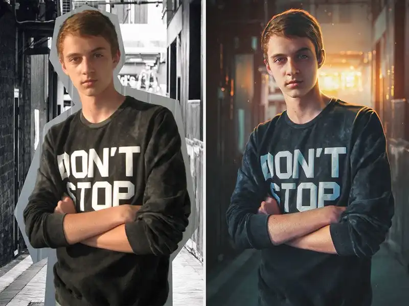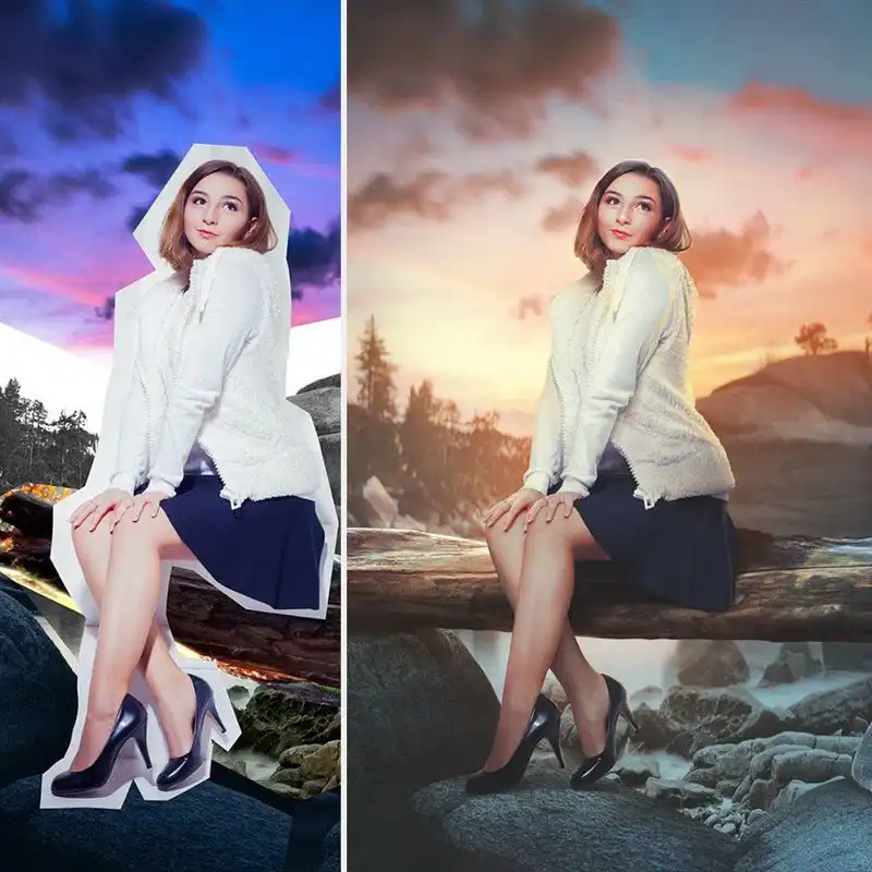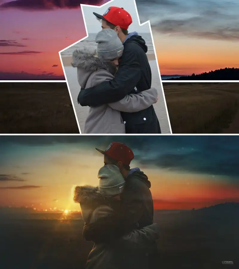 Макс Асабин, компьютерный дизайнер из России, накладывает несколько изображений друг на друга так, что линии слияния нигде не видны, и превращает их в одну невероятную картину. Для этого он тщательно обрабатывает края каждой верхней картинки, добавляет тени и световые эффекты и подгоняет цвета, чтобы все выглядело стопроцентно реалистично. С помощью своей техники он может поместить кого угодно в центр одной из захватывающих дух сцен.