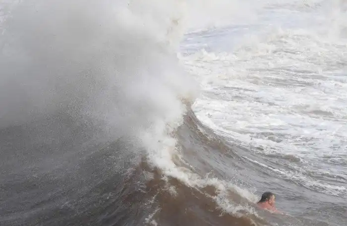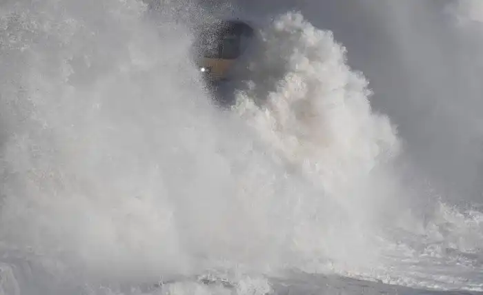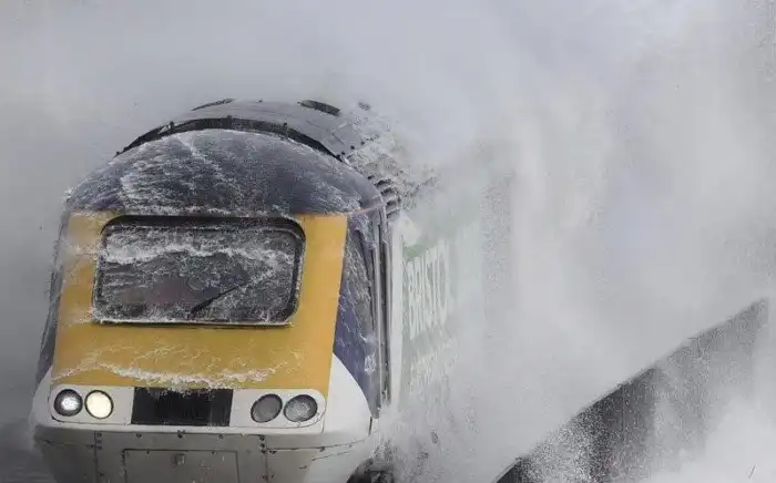 Вот что бывает, когда рельсы проложены по самому берегу океана, а океан этот не слишком спокоен.