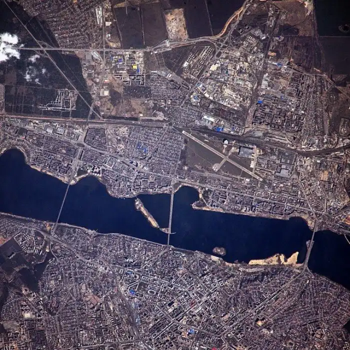 "Ах, Одесса , жемчужина у моря" - сразу вспоминается песня Леонида Утесова, когда смотришь на город с высоты МКС