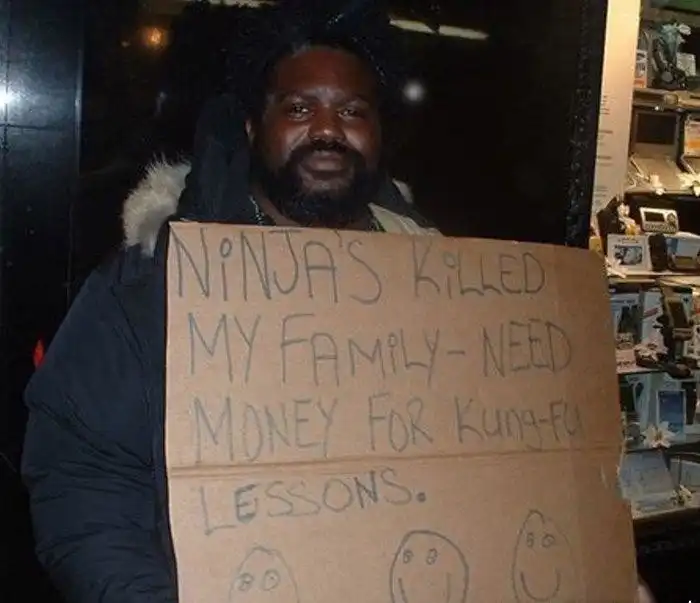 17. "Ниндзя убили мою семью - нужны деньги на уроки кунг-фу"