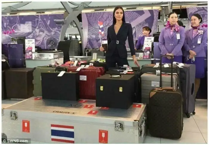 Мисс Вселенная Чалита Саншайн прибыла в аэропорт Бангкога с 17 чемоданами багажа, общим весом 300 килограмм