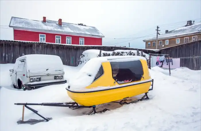 Местные рассказали, что перемещаться по следам снегохода зимой можно смело - вес транспортного средства составляет 400 кг.