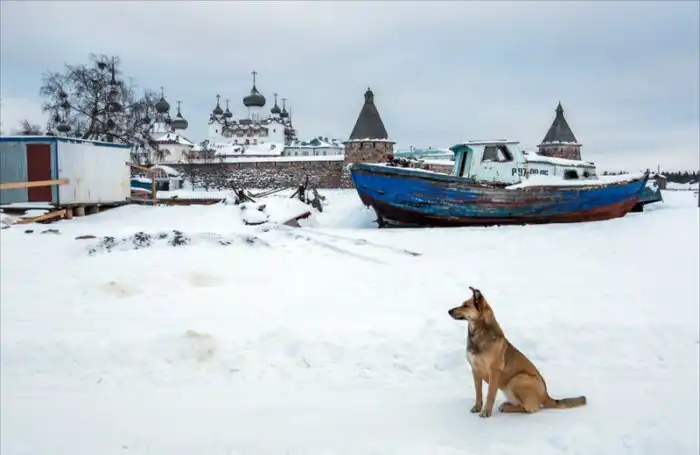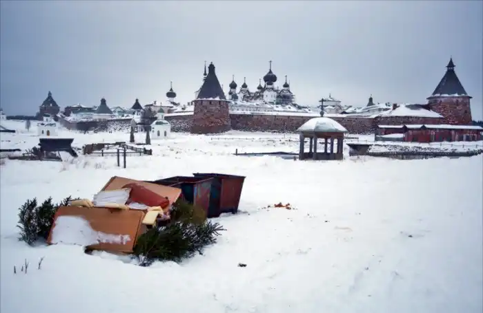 Привычный открыточный вид на монастырь, но стоит сделать несколько шагов назад...