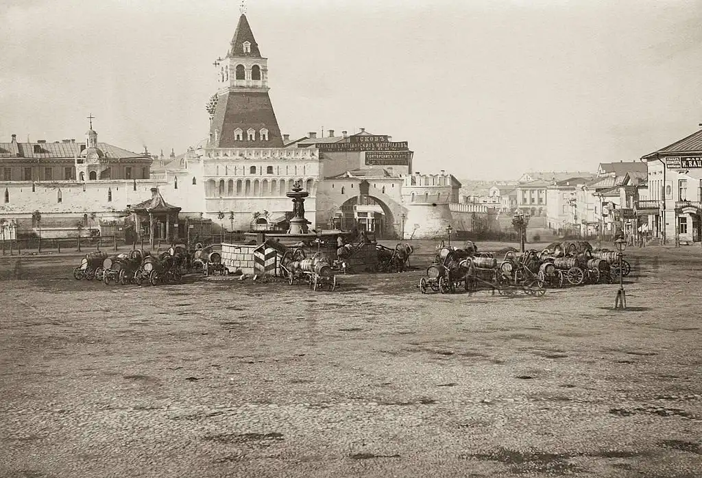 Фото 1870-х гг. Вид на Никольские (Владимирские) ворота Китай-города с Лубянской площади.
