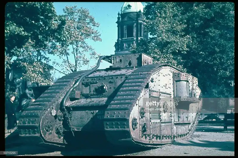 Там он уже совсем ржавый, а на этом снимке Хуго Йегера 1941 (?) года ещё зеленоватый. Стащили то ли из Таллина, то ли из Смоленска.